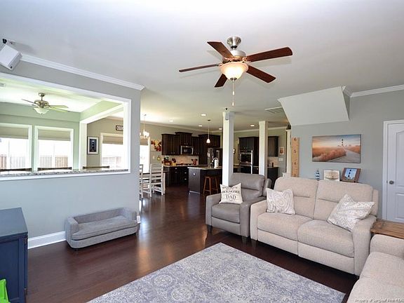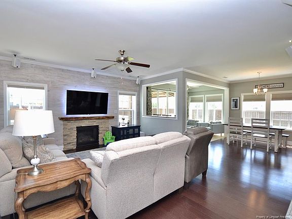 Absolutely stunning home in the Jack Britt school district! Spacious 5 bedroom/3.5 baths plus a bonus room with a closet, heated and cooled sunroom & huge walk out attic storage area! Lots of upgrades have been made to this home to include a gourmet kitchen with upgraded SS appliances to include a 36" gas cooktop & double wall oven & upgraded fridge. Open floor plan with a spacious Great room, upgraded stone fireplace and custom Spaulted Oak mantle. Formal dining can also be a great home office. Large master suite downstairs w/dual vanities and custom closet with make up vanity! 4 more spacious bedrooms and bonus room upstairs with 2 more full bathrooms. One of the bathrooms is a Jack & Jill. Step out the beautiful sunroom to your backyard oasis. Amazing Pergola, plenty of concrete for BBQ's custom concrete curbing and the lawn look likes a fairway. All privacy fenced in with Tennessee river rock along the perimeter. Hue lighting system will remain. Place your offer soon!