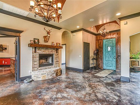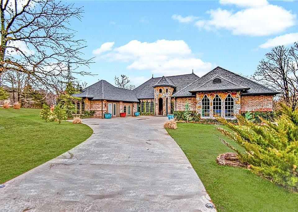 This one of a kind home sits on a stunning 1.55 acre wooded lot in Edmond! The exterior of this home is absolutely stunning with decorative windows lined with ivy and a large covered patio and fire pit in the back. Inside you will find a spacious floor plan with two living areas and a large flex room that could be multiple ways! The gorgeous kitchen opens up to the living and dining area and features granite countertops, stainless steel appliances, and a long breakfast bar. A formal dining with coffered ceilings is sure to impress your dinner guests. The master suite offers tons of space and an incredible en suite with a large tub, double vanities, and walk-in tile shower. This home is truly a gem!