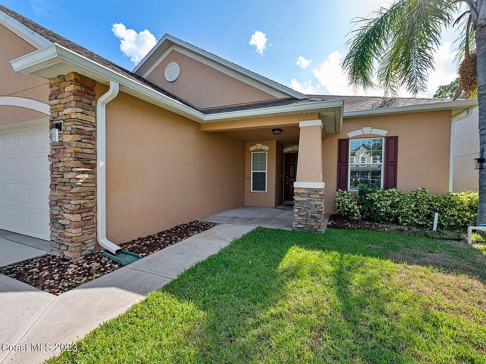 Welcome Home! Your new house features a 3-bedroom split floor plan, providing privacy and space, along with 2 full bathrooms. It's situated in a gated community for your safety and privacy, and is zoned for A-rated schools. Your home includes a screened lanai perfect for outdoor living, and opens to a fenced backyard to keep kids or pets close by. Inside, the kitchen boasts granite countertops, adding richness to your castle. Your home comes with a spacious 2-car garage and has been updated with a new HVAC system in 2023, ensuring comfort and efficiency, saving you money! It's freshly painted, giving it a clean and modern feel. Additionally, the location is convenient, being close to Hammock Landing, which offers shopping and restaurants for easy outings. From the lanai, you can watch the wildlife in the trees while sitting in (mosquito free) screened comfort! Make this house your home today!