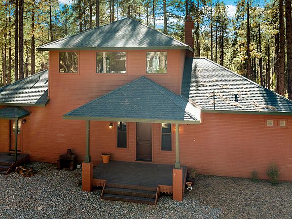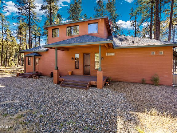 Enjoy the cool mountain forest in this secluded, private, 2,586SF, 3 bed, 3 bath home, located on 2 acres of gently sloping land with lots of Ponderosa Pine trees. Kitchen has an island, as well as a breakfast bar, knotty alder cabinets, and a large pantry. The fire place is open to the living room, as well as the primary bedroom. The 2 covered decks look over the forest below, with great views to National Forest. Plenty of flat area to keep horses, or park toys. No traffic noise or dust, but easy access to Walker Road. This property has it all. It's about 20 minutes from Costco, but feels like it's a million miles away. Watch the video! Search you tube for address.