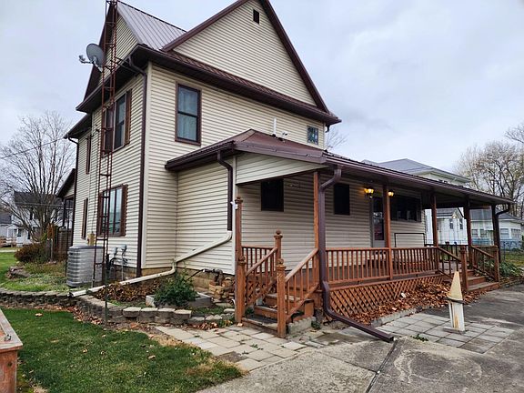 Looking for a home with lots of Character? Check out this 1,922 sq ft., 2 story home situated on .42 acres in East Liberty! The home has original woodwork, wood floors, double wood pocket door and a beautiful wooden staircase! The main floor offers an eat-in kitchen, dining room, family room, utility room & bathroom! Second floor offers 3 bedrooms. The exterior has a nice size yard and covered back porch over-looking the large concrete pad leading to the enormous 5 car garage with a workshop and tons of storage! The home has central air and heats with propane but natural gas is hookup ready. Updates include: metal roof & spouting (2017), well (2019), septic system (2014), outside generator hookup (2009), Anderson windows (2017), reverse osmosis (2016), furnace (2007). Minutes from SR 33, Honda, 10 min to Ben Logan Schools and 30 minutes to Dublin! Buyers are welcome to do inspections but Seller will not make repairs. Home being sold 'AS IS'.