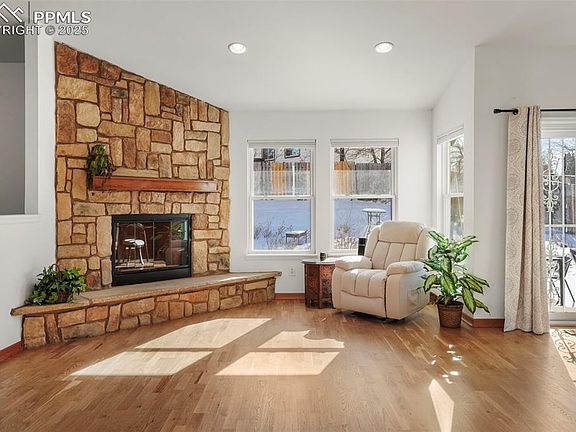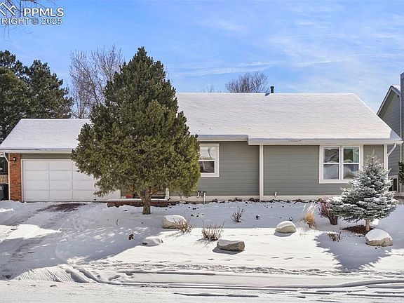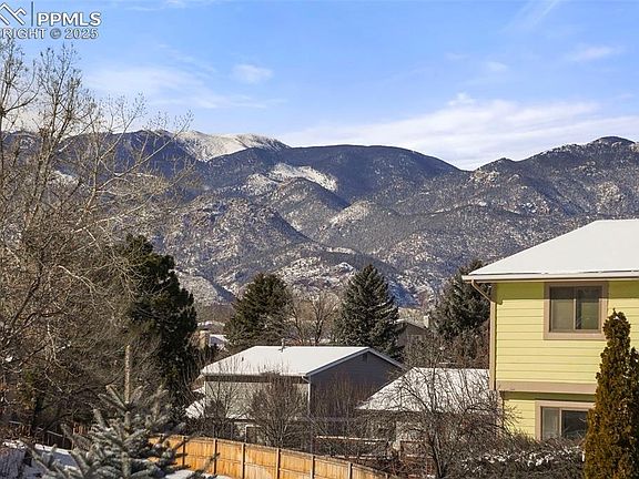 Beautiful ranch style home in mature and quiet and established neighborhood! Walk to nearby lake. This home is in a wonderful setting with beautiful trees, and backyard oasis (be sure to check out the summer backyard photos - truly a wonderful place to enjoy your own private outdoor living area). All of this plus Mountain View of Cheyenne Mountain from the master bedroom, office and front yard. Wood flooring was just restored and ready for your enjoyment. Also, new wood-burning fireplace! This home has two bedrooms on the main level, a refurbished bath with double vanity, well appointed kitchen with upgraded cabinets and fixtures, and pantry. Two car garage and gravel driveway. Storage shed in backyard. The basement features a bedroom with en-suite bath, laundry, and storage room. Easy access to downtown, I-25, Quail Lake, Tinseltown, Fort Carson, and the Broadmoor Hotel. See this fantastic home in great neighborhood!