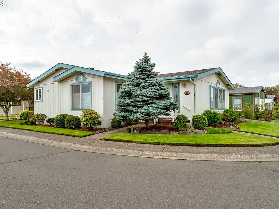 Lakeridge of Eugene is a gated 55+, pet friendly community on a small lake across the street from a golf course. Conveniently located next shop, malls, restaurants and trails along the Willamette River, yet just from minutes downtown Eugene. A private trail along the lake is just one example of the many delights available at Lakeridge. Rent includes water, sewer, trash, basic cable, and gives access to club-house facilities including indoor pool, hot tub, library, exercise room, kitchen, and billiards. residents have easy access to Ayres Lake for bird watching, kayaking, walks, or just enjoying the tranquility of nature. Park also includes RV/Boat storage, mini storage units, and a car wash area. Open floor concept with nice shop with full electric, patio Tea-shed and small garden area, large main bedroom with walk in closet and soaking hot tub in bathroom. Buyer must be approved by park.