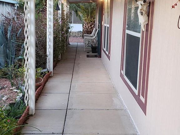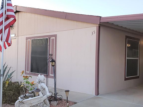 2002 Fleetwood 30x60 3bed/2bath split floorplan, Ground Set with family room, living room and large dining area. New flooring, custom molding, kitchen island, all appliances stay including: Whole House Water Softener 2017, Over The Range Microwave 2016, Dishwasher 2015, Water Heater 2013, HVAC Total Replacement 2013, Security System, Front-Loading Washer & Dryer Set 2013. Don't miss the HUGE master bedroom, large closet, en suite with walk in shower, garden tub and double sinks. The other two rooms are split from the master, very private with the guest bathroom close by. Large Arizona room and private, north side covered patio. Saguaro Canyon Village is a friendly park with many amenities and activities. Base monthly lot rent is $620 + trash + water + sewer.