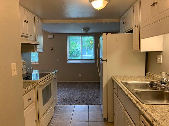 If you're looking for a quiet tranquil place to call home, you've found it. This town home is on the end, 2 story unit with bedrooms upstairs plus large bathroom. One bedroom has a walk-in closet. Bathroom is very spacious, The main floor consists of living room, galley style kitchen and dining area. Kitchen features good counter space, fridge, stove, dishwasher, garbage disposal. Separate laundry room off kitchen with newer washer/dryer, AC, newer carpet. Garage is shared w another unit, but your space is assigned to this unit. The garage has ample spot for 1 vehicle and built-in locked storage cabinets too! Tenants usually live here long term as very convenient for highway access, shopping, restaurants.