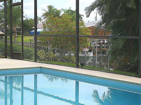 Beautiful direct sailboat gulf-access pool home. No bridges/no locks--just one turn and you are at the river within minutes. 3 bedrooms, 2 baths, 2 car garage. Updated kitchen features granite counter-tops with tumbled marble back-splash, wood cabinets, and newer stainless steel appliances. New microwave. Working fireplace in Family room. Master suite features a granite-top vanity and custom tiled shower, with built in tiled bench and natural light. Large 2nd and 3rd bedrooms, and guest bathroom also features a granite vanity and custom tiled tub and shower. Newer washer and dryer convey. Oversized (56'X31') screened lanai with a 56X10 area under truss--Plenty of room to entertain. 30X15 inground heated pool, pool heater one year old. Roll-down hurricane shutters. Fenced backyard with mature fruit trees, auto sprinklers. Concrete dock with water and electric. Screen enclosure re-screened 11/2017. ALL ASSESSMENTS PAID. Flood Insurance is not required on this home. A great, must-see home at this price!
