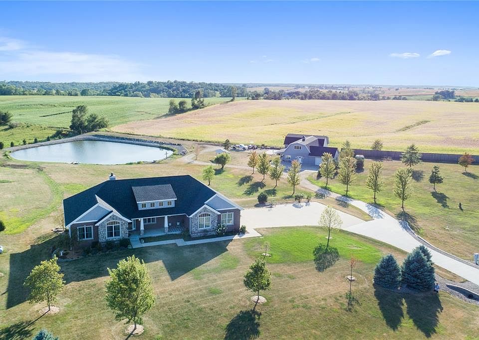 Work, live, and play all in one place! This is quite possibly one of the most premier acreages you will find in the corridor! Conveniently located just off the Swisher blacktop this private retreat tucked at the end of a cul de sac offers just under 6 acres of rolling countryside with incredible views, your very own fully stocked mature rock banked pond, an incredible shop house complete with a 35x45 an additional heated garage shop for endless possibilities. With 4 bedrooms, 3 baths, over 4100 finished sq ft of a fantastic family, and entertaining space, this exclusive ranch home, and acreage are one of a kind and a must-see! Welcome your guests inside the large family room where floor to ceiling windows reveal tons of natural light and fantastic views. Featuring wide plank white oak hardwood floors throughout, a custom dual family room/master bedroom wood fireplace, gorgeous solid oak custom kitchen cabinetry, granite countertops, expansive island seating, custom backsplash, top of the line appliances, and tons of kitchen storage. Off the kitchen is the large dining area, a cozy reading nook, a grilling deck, main floor laundry, and a built-in drop zone just off the finished attached oversized three stalls garage. On the other side of the home sits 2 large bedrooms with a guest bath and the master retreat with its walk-in closet and en suite bathroom featuring separate vanity spaces, jetted tub, ceramic tile floors, and a walk-in shower with floor to ceiling tile, plus an incredible newly attached screened-in porch for relaxing while taking in sunsets over the pond. The custom-built staircase brings you to the walkout lower level with glass French doors leading you out to a large flat patio and views of the pond. The basement has heated stained concrete floors, an open concept rec room with a back bar, the perfect theatre room, a large bedroom, a full bath, and a heated and fully vented drive under space that can be used as a bonus garage, fitness room, yoga studio, garden shed, homeschooling space, or whatever you can dream up. The home has geothermal, mature landscaping, tons of storage, and endless opportunities. For the garage enthusiasts, you will be thoroughly impressed with the adjoining shop home perfect for entertaining or bonus living quarters. This home is zero entry living space with a full kitchen, family room, large bedroom, full bath, lovely covered patio space, and an attached finished two-car garage. Literally everything you could need for guests, college students, or an in-law suite. Upstairs is finished with a large bonus room and another bath. The attached 35x45 electric and wood stove heated shop is ideal for cars/trucks, RV's w/50 amp hookup, storage, or other hobbies. The picnic shelter is a nice feature for enjoying warm days around the pond. This is truly a rare find!