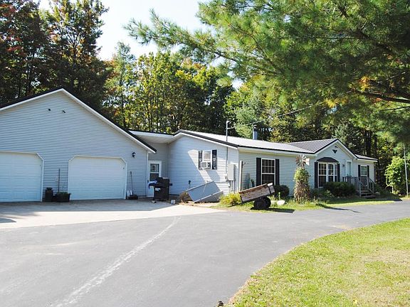 10 acres of mature hardwoods and over 1,700 Sq. Ft. of living space. Located in beautiful Maple Forest Twp. this home has been upgraded throughout. Hardwood floors, ceramic tile, pella doorwall, steel roof & whole house generator. Brand new central AC unit includes 10 year warranty. Energy efficient pellet stove heats the entire house with ease. The large master suite offers double sinks, whirlpool tub plus a stand up shower. 32X32 attached drive through garage is insulated, has heat and AC plus floor drain and connects to the home through a large breezeway. Curb appeal with a black top circle drive.