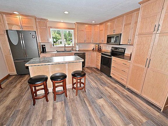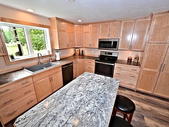 Start living the lake life in this completely remodeled, year-round Shamrock Lake home. This main-level living house is situated on nearly 2 acres of park-like land with towering birch and white pine. The gentle slope to the west-facing shoreline makes for beautiful sunsets. Move-in ready with 3 generously sized bedrooms, a 4-season sunroom and an open kitchen with an abundance of custom-built maple cabinets, pantry with heavy-duty pull-outs and center island. New SmartSide siding, shingles, furnace, kitchen appliances, central air, composite decking, water heater and heat pump are just some of the many upgrades. New septic in 2016. Attached two stall garage, detached one stall plus lots of additional space in the dry, unfinished basement means there's tons of storage for the tools and toys. Boat through the 400-acre chain of lakes including O'Reilly and Island Lakes with excellent panfishing. Pack your bags, 'cause that's all you'll need... the dock and pontoon boat even stay!