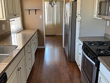 Located in the heart of Rosamond, near schools, park, freeway and shopping. This home features 3 bedrooms 1.5 baths with new carpet, wood flooring and granite counter tops in the kitchen. This property is fully fenced and ready for move in. Don't hesitate! This home won't last long Lease is for one year. Tenant pays for all utilities, including electric, water, gas and trash. No smoking. Tenant is responsible for landscape maintenance.
