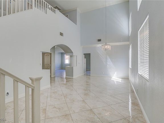 Welcome to this beautiful 5-bedroom, 3-bathroom home in Spring Valley, designed for both comfort and style. The main floor features a convenient bedroom and full bath. You’ll be greeted by impressive 20-foot ceilings and elegant formal living and dining spaces. The cozy family room with a fireplace flows effortlessly into the well-appointed kitchen, complete with quartz countertops, a breakfast nook, a pantry, and plenty of cabinet space. Durable ceramic tile flows throughout the downstairs areas. Upstairs, you'll find wood flooring throughout, including in the spacious primary bedroom, which offers a separate tub and shower as well as dual sinks. Enjoy outdoor living in the private backyard, featuring a covered patio, low-maintenance landscaping, and stunning views of the Strip.
