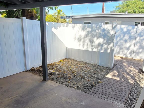 Newly remodeled 2 bedroom 1 bath! Brand new everything! All new appliances, kitchen, bathroom, flooring. This also has a fenced in front yard with covered patio, and a fully enclosed back yard as well! Combo Washer/ Dryer in unit. Property is near Ft Lowell and Country Club. Email to set up a showing. Available for move in now. Tenant pays all utilities