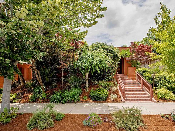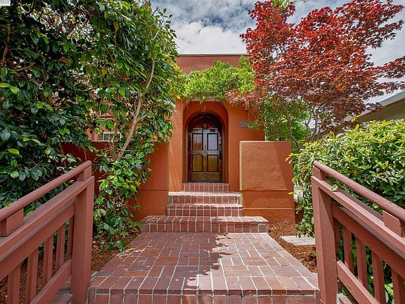 Built in 1925 in Alameda's highly desirable East End, this charming, single-level vintage home has a sophisticated Mediterranean feel and wonderful outdoor spaces. Close to Edison/Lincoln schools and just 3 blocks to Lincoln Park's pool, pickleball courts and playgrounds, the home features 3 bedrooms, 2 bathrooms, formal living and dining rooms, a spacious kitchen and a detached garage/workshop. Preserved vintage features include red maple hardwood floors, picture rails, and a brick fireplace (now converted to gas). Details include a remodeled kitchen, updated bathrooms,new light fixtures, updated electrical, an EV charger and fresh interior paint throughout. The primary bedroom includes an en-suite bathroom, while a front bedroom makes a wonderful guest room, nursery or home office and the back bedroom overlooks the yard. The entire home has abundant bright, natural light through energy-efficient dual-pane windows that also mitigate sound. Lush, colorful landscaping surrounds an open-air, hacienda-like brick front patio, and the private backyard patio is framed with tall oleander and blooming bougainvillea. Just minutes to Encinal Market, the many amenities at South Shore Center, the beach, shoreline and the SF Ferry, this special home is ready for fortunate new owners!