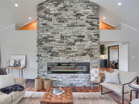 A stunning custom stone fireplace serves as the focal point of the living area, creating a warm and inviting atmosphere. The luxurious master suite is a private retreat, complete with its own stone fireplace, spa-like en suite bathroom, and a custom-built walk-in closet designed for both style and functionality.