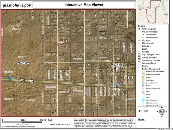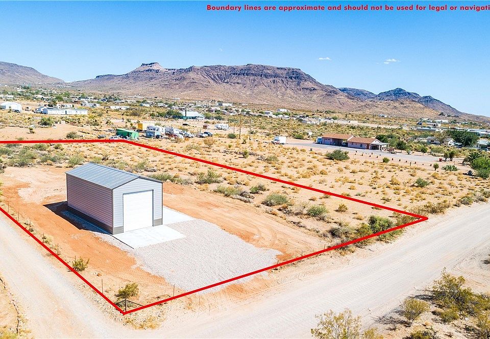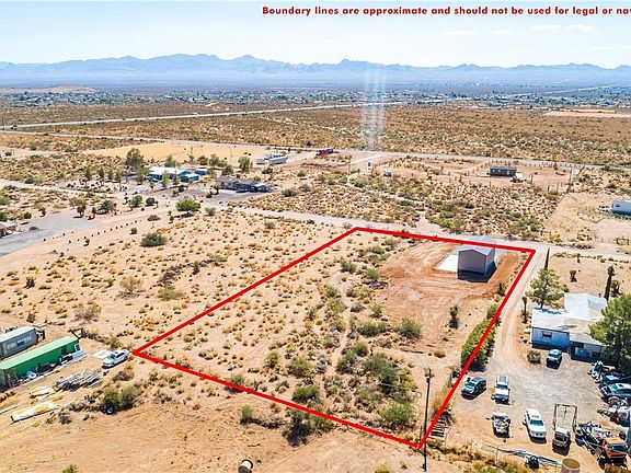 Over 1 acre lot with : *40x20 RV garage with 14ft high x 12ft wide door*Large front concrete pad *1,250 gallon septic tank has already been installed that would comply with a future 4 bedroom home *RV dump/cleanout on site *Maintained county road, about 800 ft to pavement, and easy access from HWY 68. Perfect spot to park your RV year round, or just for the season. Safe space to store when not in use. *Build your dream home or install manufactured on this beautiful lot. Mountain views, and just a short drive to Laughlin Casinos and the Colorado River! Owner carry terms with at least 40% down. Seller is a licensed real estate agent. Buyer to verify access to and cost of utilities in inspection period.