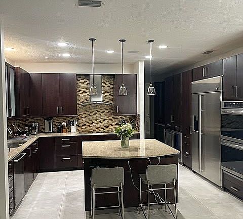 A rare opportunity to own a 5 bedroom 4 bath home with a pool and basketball court on an oversized lot in Woodfield Country Club with a massive back yard! Featuring a newly remodeled kitchen with quartz countertops, glass tile backsplash, steel appliances and charming breakfast nook, this kitchen overlooks the expansive lushly landscaped backyard. Roof was replaced 5 years ago. Additional features include vaulted ceilings, a wet bar, and remodeled bathrooms. Exlusions-entry way lighting fixture,and pendants over kitchen island