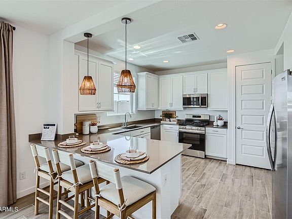A collection of brand-new single-family homes located in the master-planned community in Mesa, AZ. The community feeds into the highly rated Gilbert Public School District, making this an ideal place for growing households. There are many onsite amenities at the masterplan everyone will enjoy, including a swimming pool, basketball court, pickleball court, playground and picnic area. Commuters have easy access to Loop 202 and Phoenix-Mesa Gateway Airport for travel accommodations. This beautiful home features Sonoma Maple Linen (White) cabinets and quartz countertops. Super luxury 8 x 36 plank tile flooring.