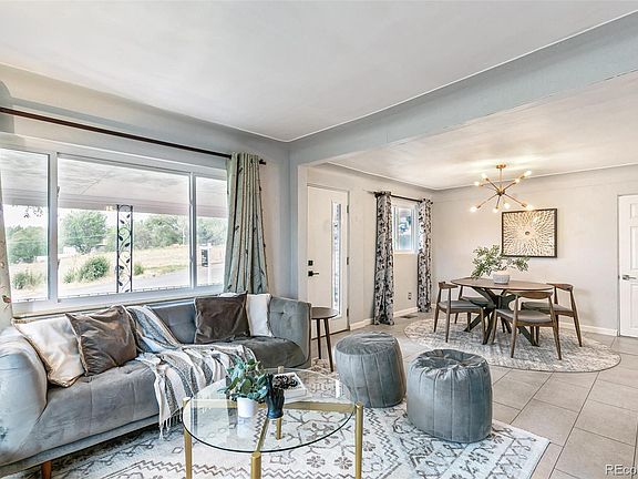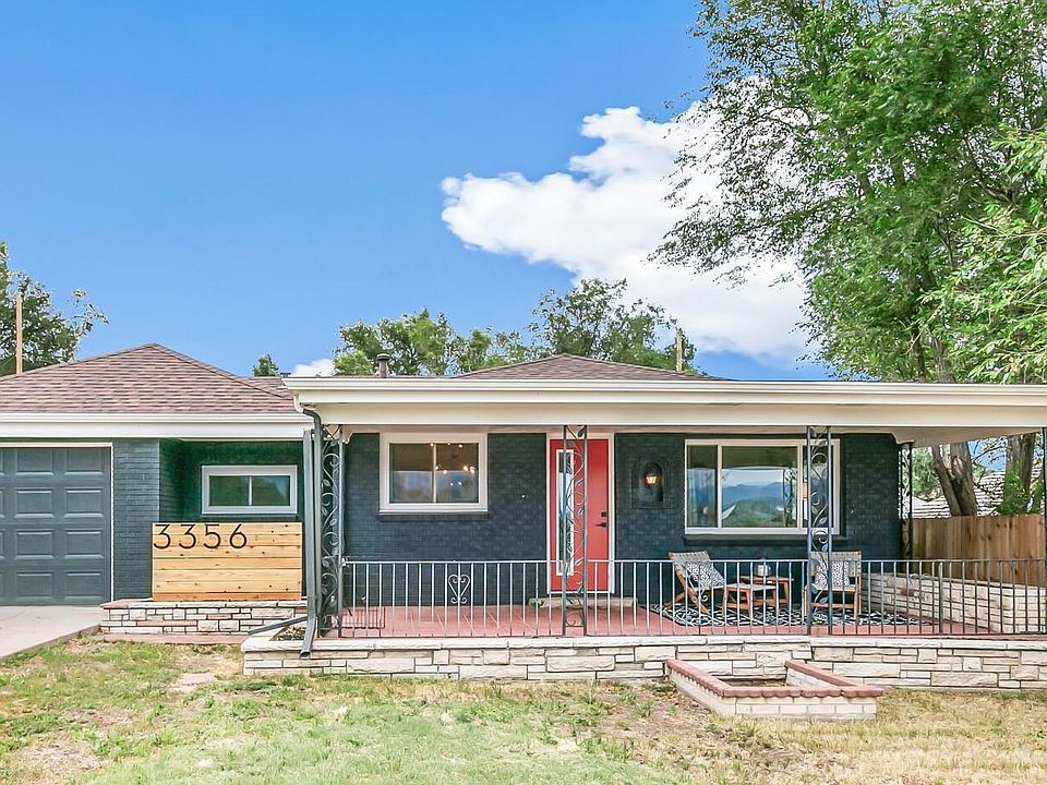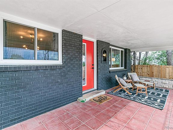 Welcome home, where modern comfort meets style! The breathtaking view from the front porch showcases the majestic Rocky Mountains like never before. Picture yourself enjoying sunsets or watching a summer thunderstorm roll in while relaxing under the covered porch. A vibrant orange front door complements the home's newly painted dark gray exterior, and the new fencing encloses a beautifully landscaped backyard. Inside, you'll find a chic and inviting atmosphere with new flooring and windows that fill the space with natural light. The kitchen is a chef's paradise, with new appliances, including a dishwasher, range, range hood, and refrigerator. The spacious eat-in kitchen features an island and pantry, perfect for culinary adventures and hosting gatherings—because we all know the best parties end in the kitchen! The dining room is ready for those special holiday dinners, and the three bedrooms offer versatile options for a media room, fitness room, or home office. Each bedroom is generously sized, providing a personal retreat from the world. The spa-like bathroom boasts a stunning walk-in shower. Located close to the city and near Loretto Heights Park, Bear Creek Park, and Harvard Gulch Park, this home offers convenience and leisure. Harvey Park South is home to about 15 restaurants, bars, and coffee shops and boasts an excellent bike score of 55. Come and experience this trendy and stylish residence for yourself!