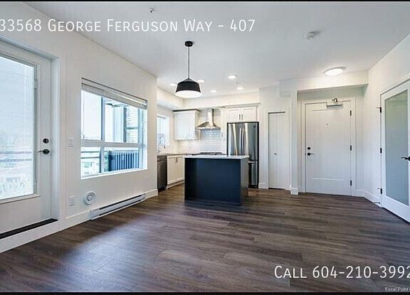 One Year Lease Required Security Deposit: Half Months Rent Pet Deposit: Half Months Rent Modern and stylish 2-bedroom, 2-bathroom condo near downtown Abbotsford. This open-concept home features a sleek kitchen with stainless steel appliances, quartz countertops, and in-suite laundry. Conveniently located minutes from shopping, dining, parks, and with easy access to Highway 1. to book a viewing. Reference the address: "407-33568 George Ferguson Way, Abbotsford"