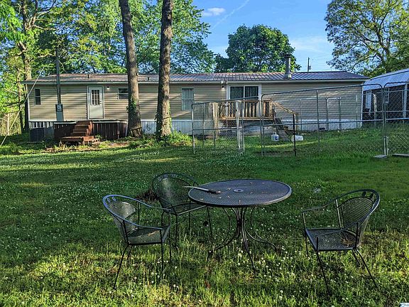 Very nice doublewide in the country with welcoming covered front porch. This spacious manufactured home features 4 bedrooms, 2 baths, and two separate living room areas. Private master bedroom has en suite bathroom with large garden tub. This move-in-ready home has an open-concept living room and kitchen, complete with large island. Recently updated, with beautiful hardwood flooring throughout the home, shiplap details, and farmhouse charm. Outside you will find a detached storage building, and carport. Enjoy your quiet .80 acres in the country, complete with a creek in the backyard. Home is not on a permanent foundation and dog fence does not convey.