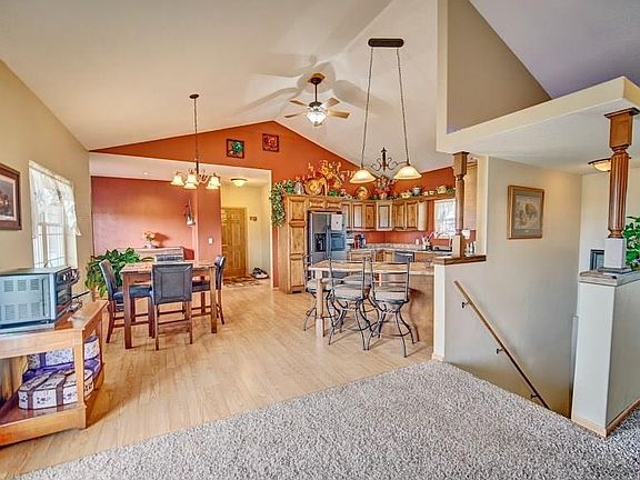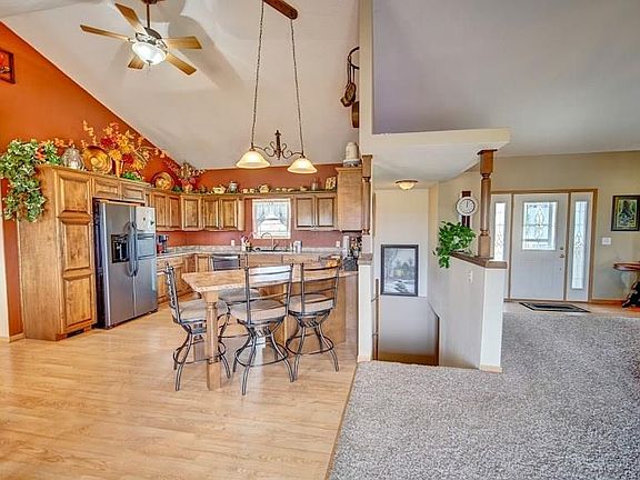 You will absolutely love country living. This 2008 built ranch home features 3 bedrooms, 2.5 bathrooms, and 0ver 3,400 sq ft of quality built construction. This property has two 3 stall garages that are wired for electric heaters. Zoned heating/cooling, Geothermal. When you step in the front door you are greeted with soaring ceilings, and a great space. Kitchen features a breakfast bar, pantry, Delta faucet, GE appliances with a stainless interior Whirlpool dishwasher. Sliders off the kitchen lead to a large patio with great views. Master suite is sure to impress with a large walk-in shower and large master closet. Lower level is perfect for entertaining with lots of space, wet bar, Storm safe room, full bathroom, and glass French doors. You will enjoy this amazing space. Other features include zero entry from garage, 36 inch doors, double doors to master bedroom. Fiber internet, underground electric, outdoor fire ring.