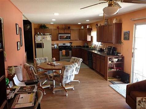 Qualifies for FHA Financing * FURNISHED * GOLF CART INCLUDED * This is the one!! Homeowners at Tri Palm Estates enjoy a Senior Community along with unlimited golf for two on 2 golf courses (an 18-hole regulation and a 9-hole par-3) plus swimming pools, hot tubs, tennis courts, shuffleboard and Clubhouse with restaurant. This 2 bedroom, 2 bath Furnished home is located on a large corner lot and has a great mountain views, plus a private back patio with a golf cart shed, and a covered carport. Newer Kitchen with wood cabinets, granite double sink, wood laminate floors, stainless steel gas stove/oven with microwave, dishwasher and sheetrock ceiling with recessed lighting. Master Bathroom includes walk-in shower and ceramic tile floor. Wood laminate floor in guest bedroom, bathroom and laundry room. Newer Air Conditioner. Other improvements include a 433A (The 433A is a recorded document also known as: Notice of Manufactured Home -mobile home- on a foundation system).