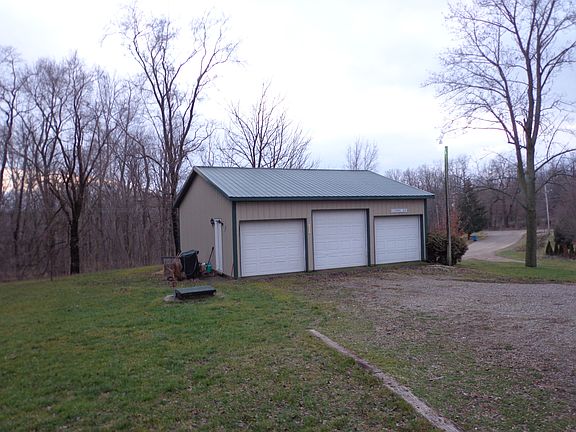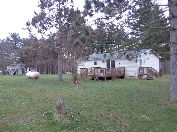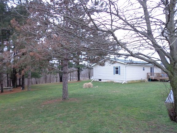 Very private ranch style 3 bedroom, 2 bath home on 1.87 acres. Home features an open concept. Kitchen has a snack bar and new flooring in Kitchen and Dining Area. Master suite has a garden tub and a shower. Home also has a full basement. Large deck off the back of the house for entertaining. The 30X30 Pole Building has 3 doors with garage openers. The property is very secluded and has many pine trees for added privacy. Stove and refrigerator inlcuded.