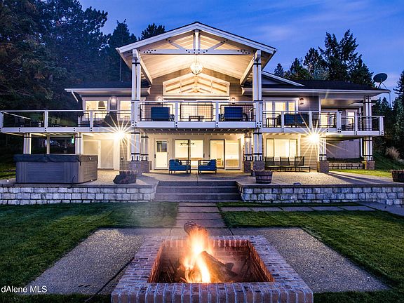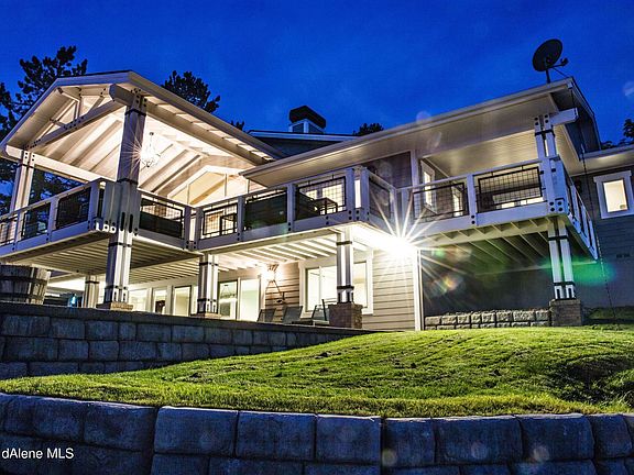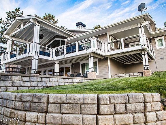 Gorgeous Coeur d Alene Lake 4 bed, 3.5 bath home with 900' of waterfront! One of the most unique sites on Coeur d Alene Lake in Carlin Bay. 17+ acres and top of the line finishes. Gourmet kitchen, incredible fireplace and great room with lake views for miles. Main floor has two master suites with additional 2 bedrooms, entertainment room and bathroom from the daylight lower level. Massive covered decks and patios, firepit patio overlooking the lake, well landscaped grounds and a newly reconstructed dock. This home will impress!!! 20'x60' shop with mezzanine and huge garage door for all of the toys. This waterfront home has it all!