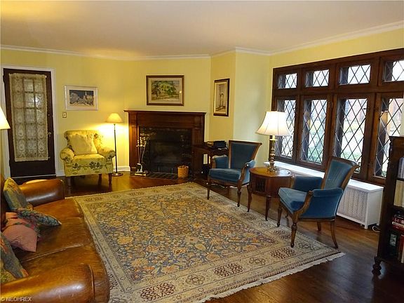 Gracious Tudor in the heart of Shaker Heights! Authentic 1920s detail -- leaded glass windows, natural woodwork, light fixtures. The living room is inviting and features a wood burning fireplace and an entrance to a side porch with an elegant tongue-and-groove wood ceiling. The formal dining room is large enough for gatherings with a charming chandelier as focal point. The sun-filled eat-in kitchen has been freshened with paint and quartz counters. Enter the second floor by either of two stairways -- the front with a lovely wrought iron railing, the back convenient to kitchen and pantry. The expansive master bedroom runs the length of the front of the house. It features 2 closets and opens to a full bath with a slate floor. Two additional bedrooms feature generous closets. A third-floor suite offers a bedroom and adjoining full bath. The lower level has a cozy, finished basement -- lots of room for watching TV, working out or children's play. Laundry room with newer washer and dryer. Out back the yard is fully fenced with a paver patio, offering room for entertaining or private dining alfresco. Updates include: 100 amp breaker box (2014), boiler (2006) and roof (2005). Close to Rapid, Cleveland Clinic, Case and University Circle.