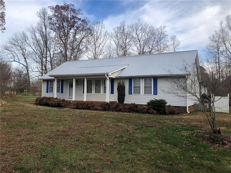 Country with convenience , 3BD / 2 BA one story modular with over 1800 sq ft heated area and split bedroom design, Attached Triple garage , Sunroom , large kitchen with island and pantries, Tin Roof ( approx 5 yrs old) , 28 x 24 Metal Building ( covered porch, wired, has propane connection for a heater, roll up door) Pole equipment shelter, small metal storage building , all on 13 Acres with road frontage on Hwy 62 and Kimesville Rd. One Owner 2