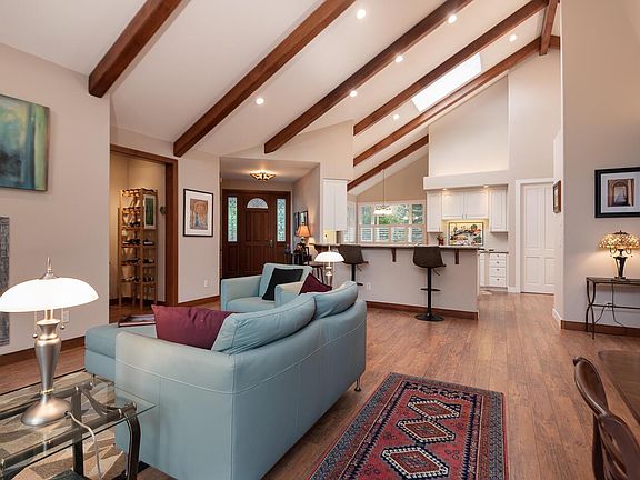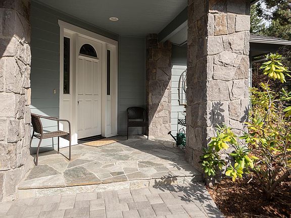 This single level with O/S, heated & A/C, 3 car garage located in Awbrey Glen, a desirable, gated, golf community in NW Bend has had some recent updates. The spacious kitchen is open to a large great room featuring abundant windows overlooking the extensive decking and 2nd fairway in front of tee box. The great room boasts a gas fireplace with updated tile surround, open beamed vaulted ceiling and wood floors. The well designed floor plan does not waste sq footage and separates the primary bedroom from the others. The primary bedroom with gas fireplace, and bath have been completely updated with a new tiled shower, double vanities and tile floor.