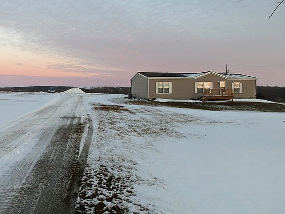 This 2015 mfg. home is located approx. 2 miles south of Bethany with blacktop access. The home has a large open concept 15x20 kitchen/dining which is open to the 15x20 living room. The 14x15 master bedroom is located at one end of the home just off the kitchen/living room and has a large 4x10 walk-in closet and 8x14 bath with a tiled walk-in shower. The second and third bedrooms are located at the other end of the home and measure 10x14 and both have 4x7 walk-in closets. The second bath is 4.5x11 and has a tub with shower. Just off the dining area is a sliding glass door that gives access to the hot tub on the patio outside. A large 10x14 utility room consists of the washer/dryer, sink and lots of cabinet/counter space. The kitchen has a lot of cabinets and a large island in the middle gives even more cabinet and counter space as well as providing extra seating. All appliances stay with the home. The home sits on a full concrete pad and has a large crawl space for additional storage. In addition to the home there is a 24x30 garage with concrete floor and electricity. On one side of the garage are two carports. Be in the country yet close enough for quick runs to town and with plenty of space you will have the option to expand, garden and/or have small animals.