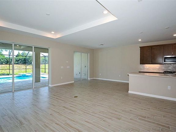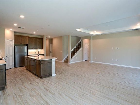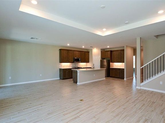 - Interior Features: High Ceiling(s), Master Bedroom Downstairs, Open Floorplan, Walk-In Closet(s), Solid Wood Cabinets, Kitchen/Family Room Combo, Solid Surface Counters, Tray Ceiling(s)