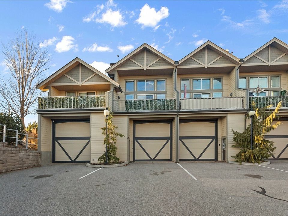 One owner townhome - never been rented - in the first, more spacious area of Tesoro Arca (aka Townhomes for Toys). This two bedroom, 2.5 bath two-storey townhome with an ELEVATOR to all floors, is spacious, freshly painted, and has had numerous upgrades. The furnace and AC have been replaced, as well as the hot water tank. A gas heater was installed in the garage, a gas BBQ connection on the deck, and a hot tub was installed on the deck as well. The elevator controls have been replaced from the original and work great. It has a central vacuum system, and a NEST-controlled deadbolt, thermostat, doorbell and interior cameras. Filtered cold water to the kitchen tap. One bedroom and full bath on the main living floor, and the primary bedroom, ensuite, walk-in closet, and a large loft area on the top floor. It also has the perfect garage for your RV or your boat - big and spacious, (50 deep x18.75 wide x14 high) with your own RV septic drain! Plus a mezzanine area and a half bath in the garage. This area of the complex has more room between buildings, so its easy to bring your RV in and out. From the top floor you can see the Mission Hill Winery bell tower and the lake. Close to amenities and yet in a quiet area of West Kelowna. Also a good option if you go away in winter - great lock-up-and-leave! On WFN land, so the BC rental restrictions do not apply. No GST or Property Transfer Tax either. Quick possession!