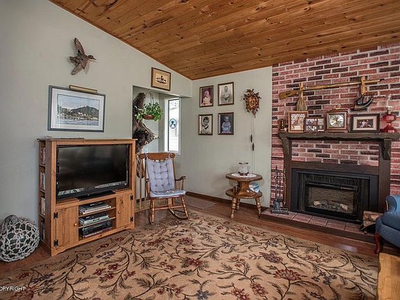 In-town living with privacy is offered at this 4 bedroom, 2 bath, 2 story home. Enjoy the view from the deck while entertaining guests, lots ofnatural light. Well designed kitchen with newer appliances,pantry, electric fire place in the livingroom, master bath remodeled in 2014, exteriorpainted in 2016, lower level with large bedroom, living area, large shop with wood stove and 1 car garage. Excellent family home. A must see.