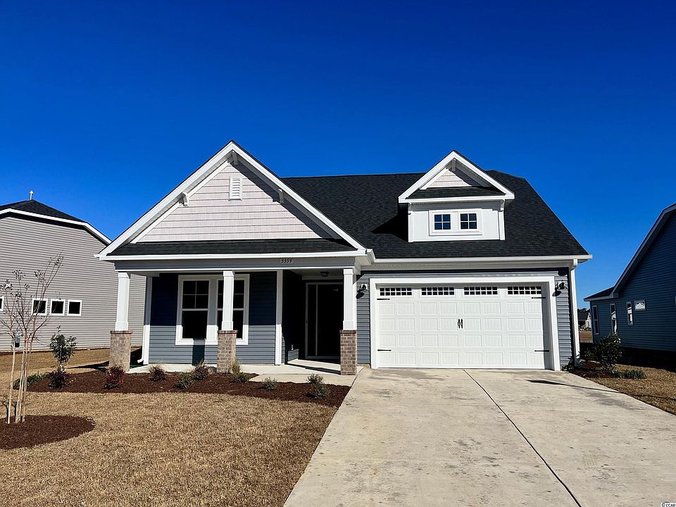 A perfect balance of outdoor living spaces and coastal-inspired interior, this home encourages you to slip your sandals off and relax. This home has 3 Bedrooms and 2 full baths. Step in from a covered front porch to find an open dining, great room and kitchen area. Personalized options include a Fireplace and tray ceiling in the great room along with a gourmet Kitchen. Whether you're looking for an abundance of counter space, added seating, or a more intimate gathering area, this home offers options for all. Breeze through large sliding glass doors onto the spacious covered rear porch for warm summer evenings and afternoon get-togethers. Through the foyer you'll find a large drop zone and laundry area with a bench for seating as you unload beach accessories or sand-filled clothes. Beyond the open living space, find a stunning master suite complete with a tray ceiling, enormous walk-in closet, double vanity with seated shower and deep soaking tub. Go ahead, kick your feet up, sit back, and relax among the day-to-day comforts of this lovely home.