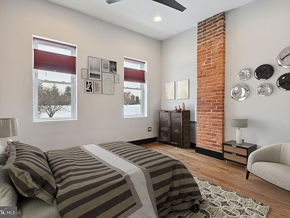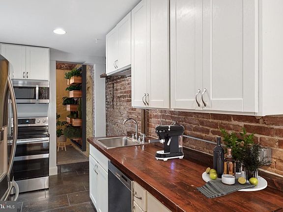 This lovingly renovated home blends the best of historic Hampden with a modern lifestyle. Freshly painted, details include exposed brick walls throughout, much of the original hardwood flooring, exposed copper piping, and a stunning bathroom. Custom built-ins and a flower-step staircase add character. This home is located only one block from the renowned Hampden Avenue and is conveniently across the street from Roosevelt Park. Take an easy walk to Clipper Mill's great restaurants and stores. The kitchen has high-end stainless-steel appliances and an over-sized pantry that provides plenty of storage, as well as custom cabinets and countertops made from reclaimed wood from the original house. Clever under-stair shelving makes the most of the space. The bathroom contains Brizo fixtures that provide a spa-like retreat, featuring a shower complete with multiple body sprays, a hand-held sprayer and a luxurious rain shower head. The enclosed front porch overlooks the park, faces west to have the best sunset views, and could also be used as a solarium. The unfinished basement is well-lit, powered, and also contains a large storage room. Backyard has room for a garden and a parking pad. Newly painted, and front iron railing just restored. Major renovation in 2019. Photos are virtually staged.