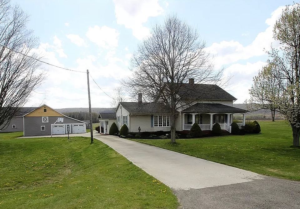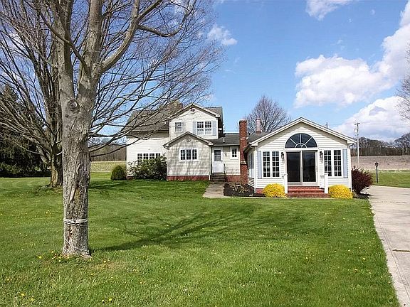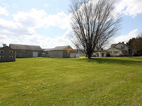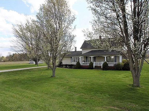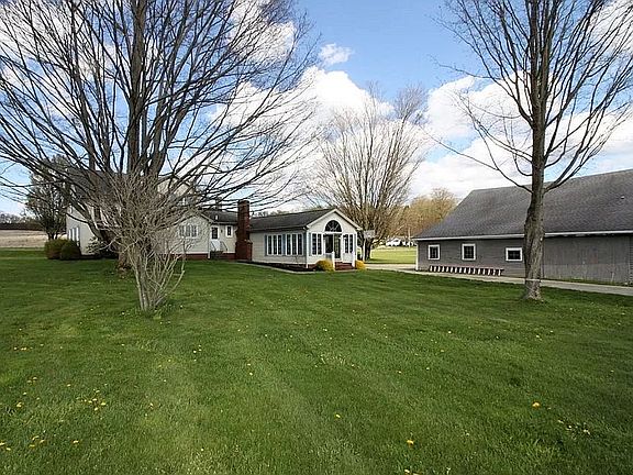 This beautiful home is being offered with approximately 4.9 acres of land. The property consists of a large barn with wood and peg construction and a smaller barn with overhead doors to accommodate equipment. 24 ft above ground swimming pool with gas heater. The home has had many updates over the years. This includes new waterproof rigid luxury vinyl flooring throughout lower level, an addition of a large family room with a wood burning fireplace and beamed cathedral ceilings. Off the family room is a beautiful sunroom that has radiant heated floors and the same beamed ceiling as the family room. The spacious formal living room features a fireplace with built in bookshelves and french doors that lead to the covered front porch. The dining room is between the living room and kitchen. The size of the dining room is ideal for large gatherings. The room is flooded with light from the bay window. The kitchen has a great flow with an abundance of cabinets and granite counter tops. There is a breakfast bar that separates the kitchen from the breakfast area. The main level also contains the large master bedroom with bath, a large laundry room and an additional full bath. The second level has three additional bedrooms and a full bath. Free gas to supply main house.