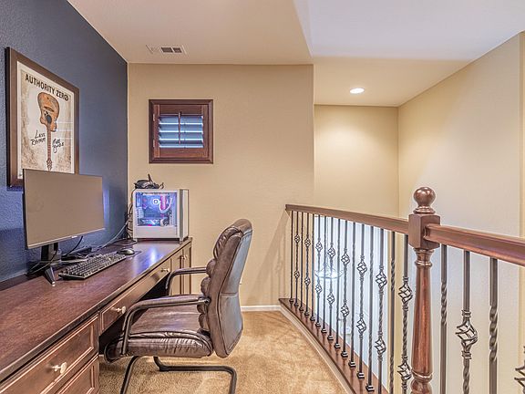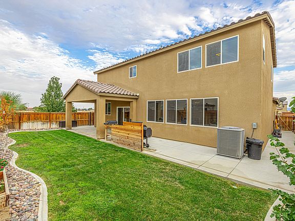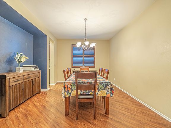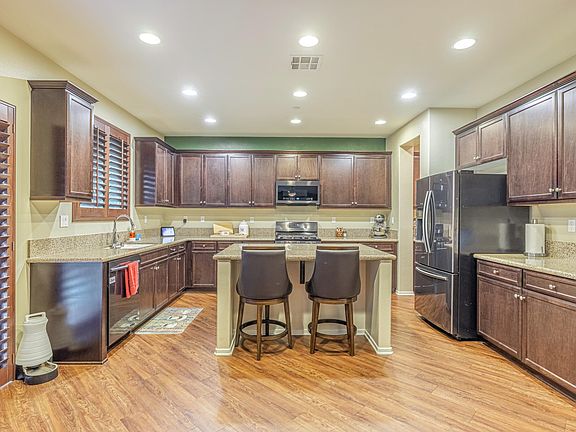 Looking for an upgraded, newer built home without the wait? You'll fall in love with this 5 bedroom, 3 bathroom home featuring nearly 2800 sf of living space. Boasting custom wrought iron staircase, beautiful shutters along with modern vinyl plank flooring, this home is a treat. The open great room concept provides a spacious kitchen with granite counters and large center island as well a walk-in pantry. The formal dining is great for entertaining with the upstairs laundry makes chores a breeze. The master suite features dual sinks, walk-in closet and separate tub and shower while the 4 additional bedrooms, with one downstairs, are amply sized allowing room for all. The tech center upstairs provides the perfect place for home management/ school work. This home has it all. In the rear yard you'll find a stucco patio cover, wired for ceiling fan as well as landscaped yard and a dog run or garden area. What more can you ask for? All priced at under 450k. Call now for a private showing!