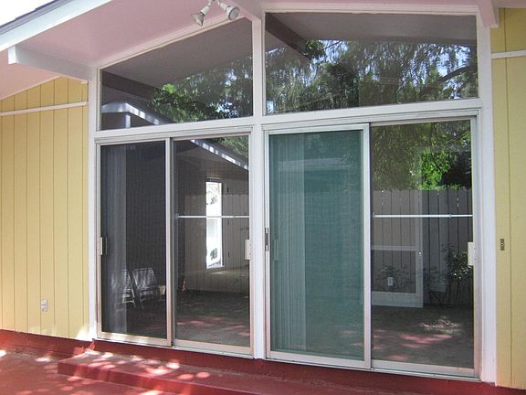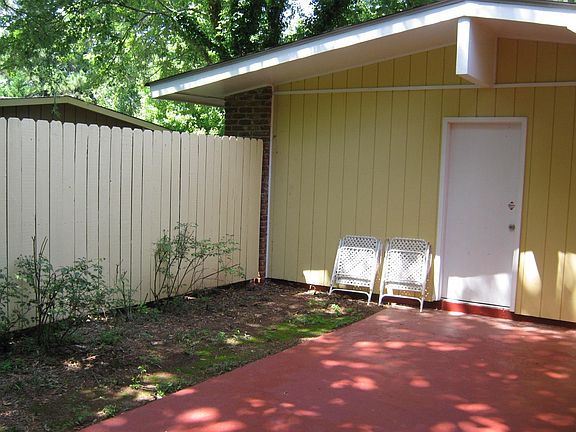 Mid-century Modern, open floor plan with vaulted ceilings, floor to ceiling windows, located at the high point of Northcrest road, big screened back porch, private back yard and a big 2 car garage. Convenient location & NO stairs. Credit check required, FICO 650+. Potential rent to own/owner financing. Owner pays for yard maintenance & trash pickup