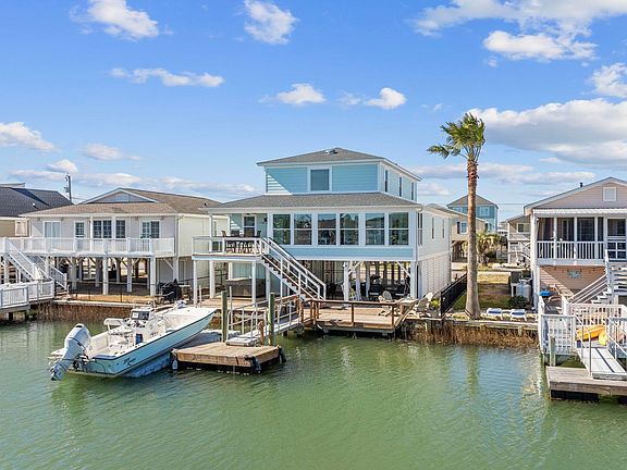 Beautiful 4 BR/3.5 Bath Cherry Grove Channel Home with private dock and tons of outdoor entertaining space! All Heated Living Space is above the flood zone level! House completely renovated in late 2018-2019 and has been used as a primary residence- List of items replaced during renovation include: Roof, Cement Board Siding, Paint on interior and exterior, Pavers in front driveway and back patio, Windows throughout, Fixed Dock, Floating Dock and Seawall, AC units & Ductwork, Underground electrical service & rewire of house, Kitchen & Bathroom Cabinets, Subway Tile Backsplash in Kitchen, Interior & Exterior Doors, Tongue & Groove Ceiling on Front Porch, Granite Countertops in Kitchen, 2 bathrooms & laundry, Real Hardwood Floors on entire main level except for carpet in walk in Master Closet and Upstairs Bedroom, Tile in All Bathrooms and Laundry Room, plumbing pipes & fixtures, 2 Fully Tiled Showers, 1 half tiled bath/shower combo, Interior Staircase with Cable Railing and wood floors, All Lighting, Back Deck and staircase with cable railings, Outdoor Shower with composite deck flooring, Rocks/Stone Pavers for Landscaping. There are also 2 storage rooms on the ground level, one is a large workshop with 2 sections and built in shelves and the other includes a quartz countertop & sink, refrigerator and commode with wood paneling walls and lvp flooring (pictures shown of this room). Fence just installed in 2023. 3 of the 4 bedrooms have walk in closets. All current dredging assessments have been paid in full! Short walk to beach, hop on boat for fishing or beach it at the Cherry Grove Point or Waities Island! Tons of restaurants, shopping, groceries and more are just a golf cart drive away.