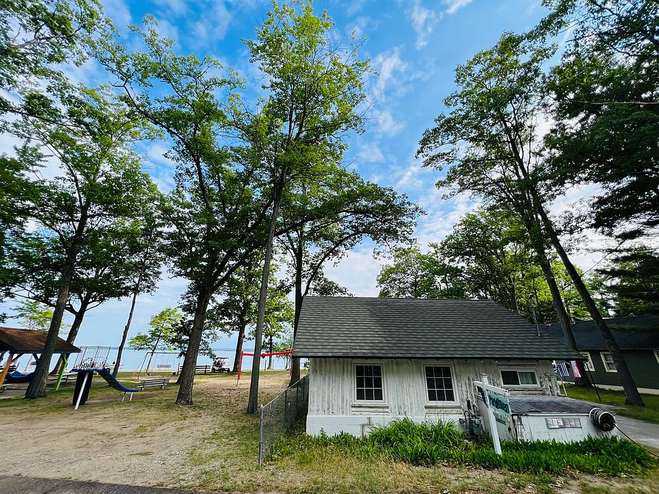 Higgins Lake Association Cottage with private lake access which includes boat mooring and shared 65 feet of lake frontage. Cottage needs finishing, current status is stud walls in living and bedroom area, seller has priced reflecting needed work. This is a great opportunity to have a cottage and boat mooring at this price.