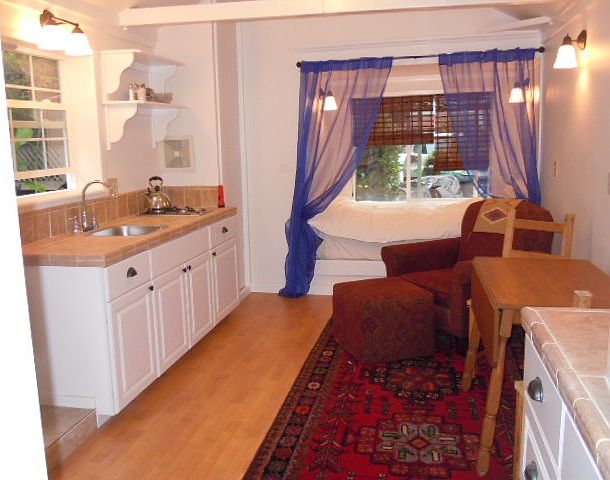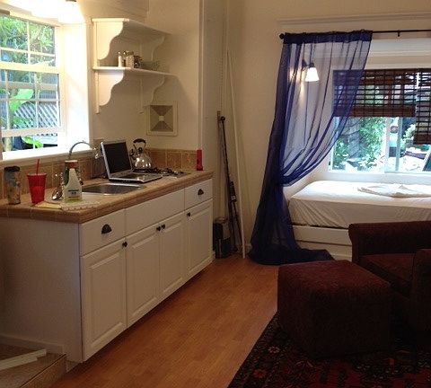We offer a temporary living space with all amenities for about six months from August 15th until the end of the December 2017 The Rockridge/Elmwood neighborhood is very popular. We're about 2 1/2 blocks from Rockridge BART and you can walk to CCAC or walk to UC Berkeley. A "walk score" of 92; a walkers paradise. We welcome you to a very bright and lovely studio cottage with a private entrance. The room is furnished with a comfortable bed with comforter, Persian rug, work table and a pro wireless internet connection. There is a dressing area and with clothing storage space. We're glad to provide linens. There is a privacy patio and a small but serviceable kitchenette. Please let me know a bit about yourself, why you need temporary housing, and the specific dates in which you are interested. 6 month sublet until the end of December 2017