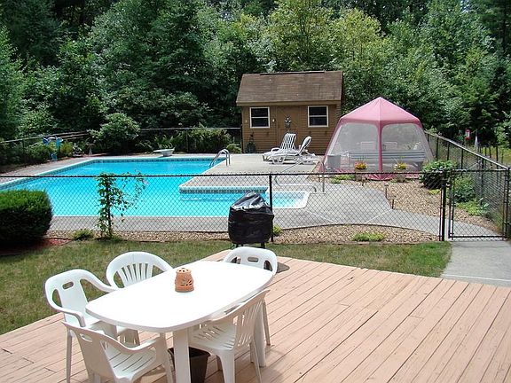 Off a pretty country road in Lunenburg, you will find this beautifully maintained, custom built home tucked away on a picturesque lot. Grab your swim suits and call the family over for a BBQ or celebration! Lots of room to run and play outside. Open floor plan and sun drenched rooms with skylights throughout. With over 2,000 sq ft of living space, this home has 4 bedrooms, 2 full baths, extra bonus rooms off first floor, over sized 2 car garage, and did we mention the pristine pool with cabana? Some features include the passive solar design of the house to make heating and cooling more efficient, security system, whole house fan, and central vac. Come and experience what it would be like to live here...You don't want to miss this gem! Open House Wednesday, 8/17 from 5-7pm.
