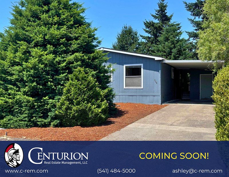 TERMS: * Rent: $1,800/MO * Deposit: $1,750(On Approved Credit) * Application Fee: $50/per adult 18+ * Tenancy: 1 Year Lease * Heat Type: Electric * Note: Non-Smoking Property PET POLICY: * Dog Allowed * Cat Allowed * 2 Pets Max Under 25lbs * $500 Additional Deposit per Pet UTILITIES: * Included: NONE * Tenant is Responsible for All Utilities AMENITIES: * Refrigerator * Stove/Oven * Microwave * Dishwasher * Detached Storage 1 STORY MANUFACTURED HOME LAUNDRY: * Washer & Dryer Hook-Ups WATER TYPE: * City SEWAGE TYPE: * City LANDSCAPING: * Tenant Responsibility PARKING: * Driveway * Covered Carport 1. Move-in Special ONLY applies to the current month. (IF APPLICABLE) 2. The application process normally takes 1-3 business days. 3. Must see the property physically before the deposit is made. 4. If you have a pet, ESA or you don't have a pet you must register at https crem.5. Apply to one property at a time. Pet Policy: Notice to all residents and applicants, everyone must complete the screening process. This is not only for pet and animal owners; it applies to residents and applicants who do not own pets. The pet policy includes caged animals and pets. You will not be moved into the unit without this completed. Prices are subject to change, we do not guarantee prices, items change, and errors occur. If there is a discrepancy between a price online and a price in the office, supervising property manager shall have the final say. *Due to overwhelming demand we may be unable to respond to your rental inquiry.* INTERESTED IN THIS PROPERTY? Properties are on a Agent Guided Tour and each listing specifies how it is viewed. Feel free to drive by the property to check it out. "This information is deemed reliable, but not guaranteed." Centurion Real Estate Management, LLC 1637 Oak St. SE Eugene OR 97401