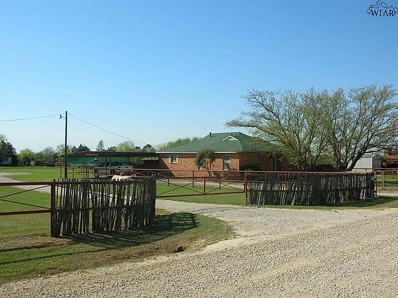 Great horse property. Brick home with 2 living areas, fireplace, dining room, breakfast bar, 2 bedroom, 1 bath, 3 car carport. 1616 sq.ft. Roof is approx.. 2 years. Septic system 1 year old. 2.4 acres with an 135 x 240 arena with roping chute, boxes, stripping chute and return alley. 30 x 40 barn/shop with tack room and 20 ft overhangs on each side. 20 x 40 barn with tack room, hay storage, 4 stalls with runs. 2 Pens with loafing sheds. Wash rack.