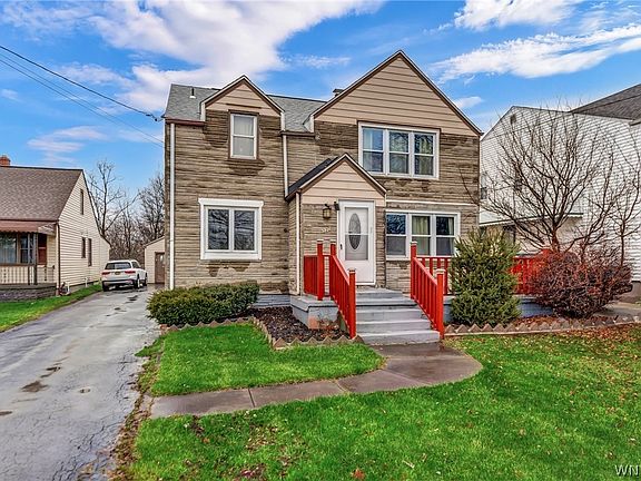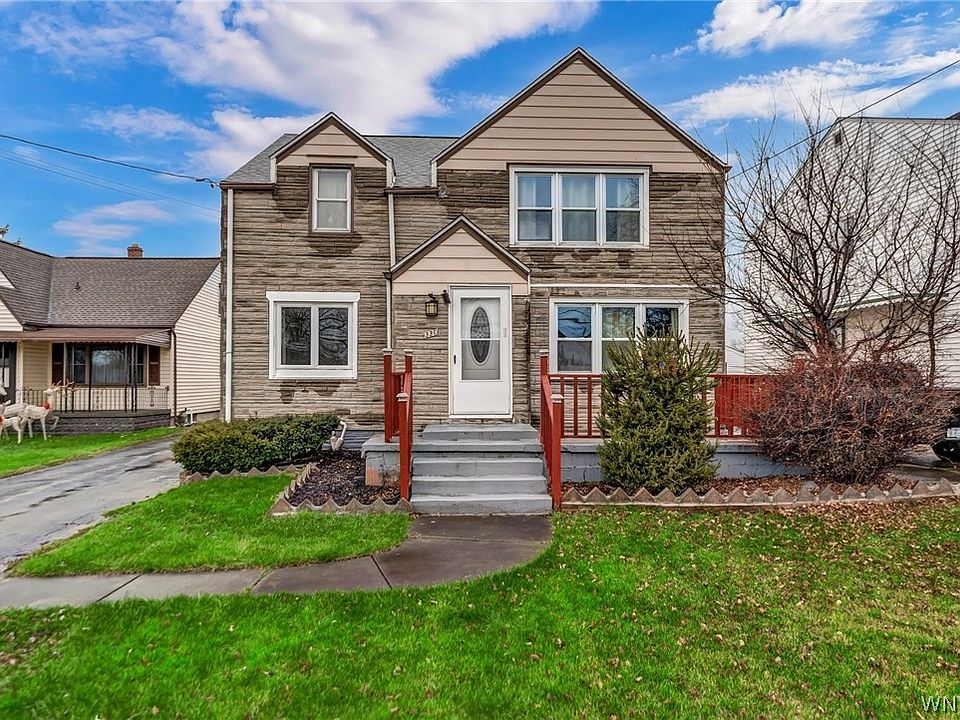 This beautifully updated home sits in a central location, just a short drive from the Buffalo Airport, or Downtown Buffalo. With its 5 spacious bedrooms, and ample closet space this home is a perfect fit for a large family, or a growing one. There are new wooden floors throughout the home in addition to an updated kitchen with granite counter-tops, and new appliances. Both full bathes have been totally remodeled with a jacuzzi tub in one, and a stand up shower in the other. The half bath has been updated as well. Downstairs you will also find a generous sized living room, and a formal dining room that goes right outside onto a deck over-looking your backyard. Other updates to the house include the heater, new roof, and pex plumbing installed throughout the home. This home is truly move in ready, and all that its waiting for is your personal touches. It is a must see, and will not last!