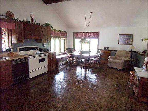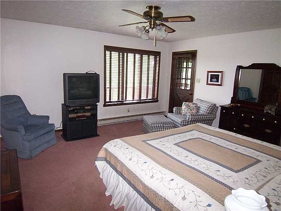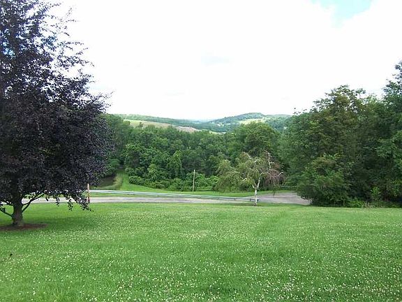 What a remarkable home and location! Large open floor plan features a great room and huge kitchen/dining area with skylights and vaulted ceilings. Floor to ceiling brick log burning fireplace in greatroom. Each bedroom has a bath, and the big master bedroom also has a walk in closet and a deck overlooking your land. There's a patio in the rear, and decks on three sides to enjoy the vistas. Close to transportation, but secluded. Detached 2 car grg, plus add'l bldg can be grg,shop,studio--power to it.