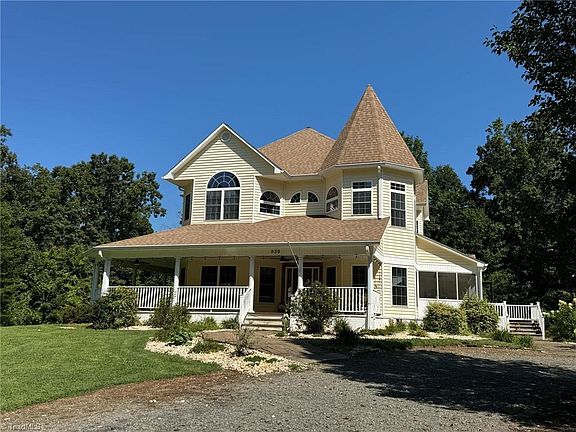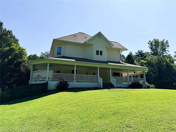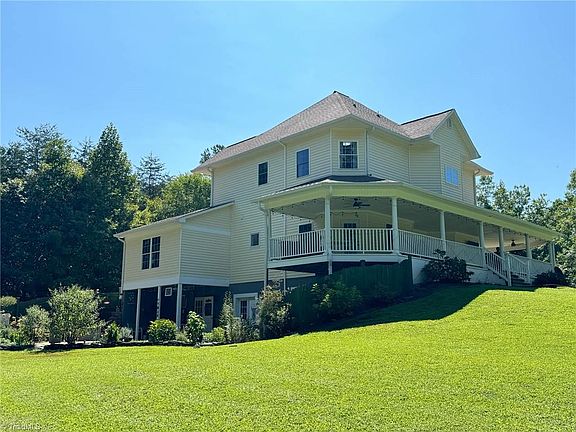 **Highest and best by 5pm 9/14/24** Welcome home! This exquisite 4-bedroom, 3.5-bath residence is set on 4.22 acres just outside Elkin City limits. The modern, custom-built design features stunning hardwood floors and numerous bespoke details. Enjoy the expansive wrap-around and screened porch, ideal for hosting large gatherings, and take advantage of the generous yard and garden space. The main level is open and airy, featuring a spacious formal dining room adjacent to the kitchen, a large kitchenette, an office/den, and a convenient half bath for guests. Upstairs, you'll find a luxurious primary suite with a custom walk-in shower and soaker tub, as well as two of the three additional bedrooms outfitted with custom bunk beds. The finished basement includes a beautifully designed custom kitchen and living area, perfect for an in-law suite or apartment, complete with a walk-out patio and garden space. Don’t miss the chance to see this spectacular home—schedule your showing today!