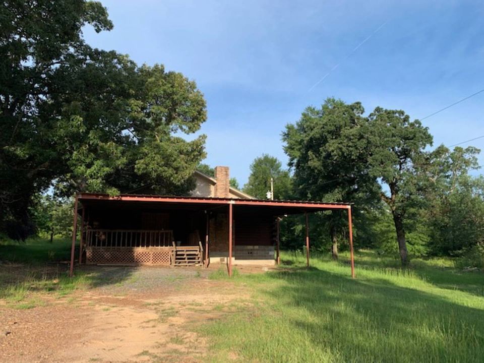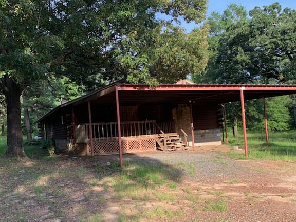 Texarkana, AR- just outside the city limits, dead end of the road with 7.71 acres of land, log home with open family room and kitchen, large bar, spacious bedrooms, metal roof, large cover deck, outside shed on concrete slab- call for private showing